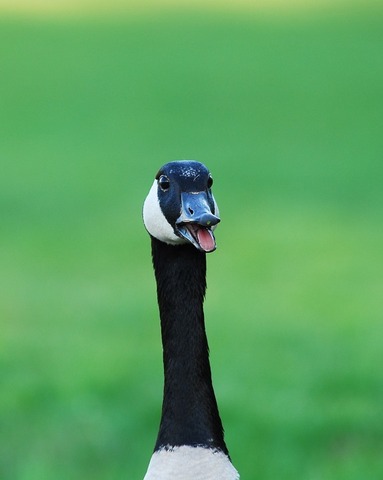 Yes, the Canada goose is handsome, grayish white with a black neck and head and a white chinstrap. Yes, they mate for life, a devoted couple, and kudos to them for that.