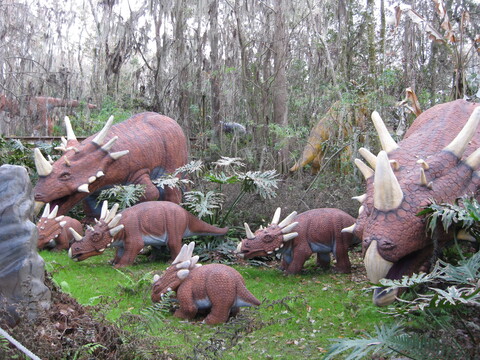 Yet, here’s this convivial family, grazing at Florida’s Dinosaur World. It shows the huge reptiles and humans can co-exist, if the dinosaurs are made of concrete.
