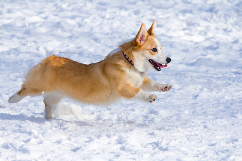 He's a Pembroke Welsh corgi, with a huge personality, but short legs. Walter can't walk through the snow, with those short legs, so he prances through it, jumping, pirouetting, burrowing, leaping up in a geyser of white—having a blast.